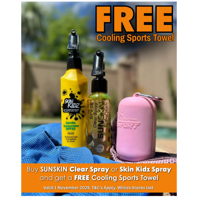 Buy Skin Kidz Spray Sunscreen and get a FREE Cooling Sports Towel